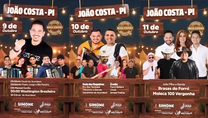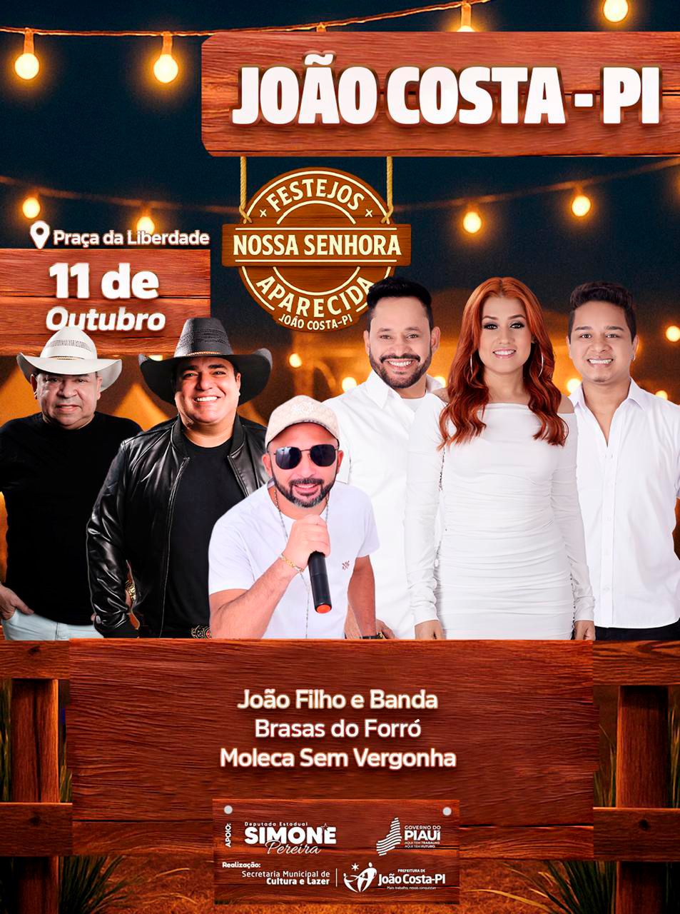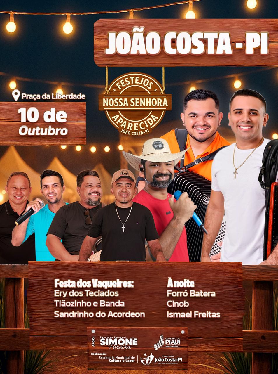 A realização é da Prefeitura Municipal de João Costa, por meio da Secretaria Municipal de Cultura e Lazer, com apoio do Governo do Estado do Piauí e da deputada estadual Simone Pereira.