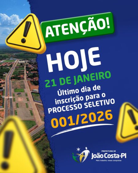 A Prefeitura de João Costa informa a 8ª convocação do Processo Seletivo nº 001/2025, dando continuidade às etapas previstas no edital. Os candidatos convocados devem observar atentamente os prazos, a documentação exigida e os procedimentos estabelecidos para esta fase do certame.