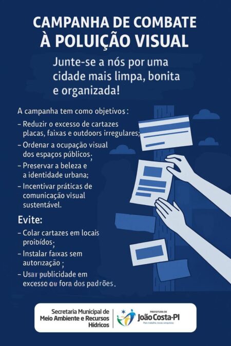 A Prefeitura de João Costa, por meio da Secretaria Municipal de Meio Ambiente e Recursos Hídricos, lançou uma importante campanha de combate à poluição visual. A…