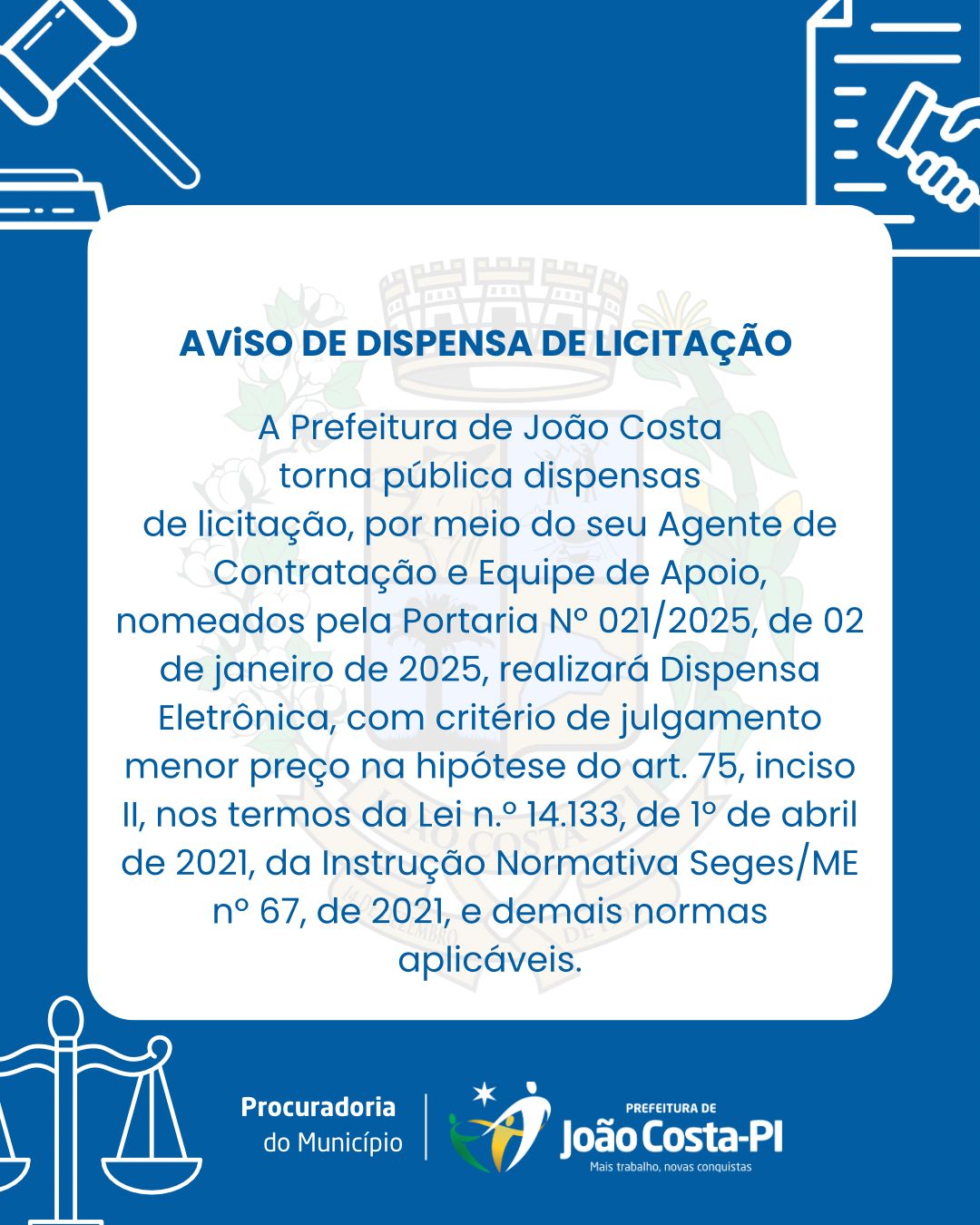 Prefeitura Municipal de João Costa | Gestão 2025-2028