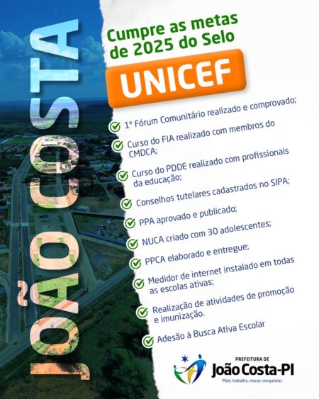 O município de João Costa alcançou um marco significativo ao cumprir as metas estabelecidas para 2025 do Selo UNICEF, reafirmando o compromisso da gestão municipal com…