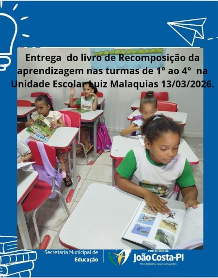 A Secretaria Municipal de Educação de João Costa realizou, no dia 13 de março de 2026, a entrega de livros de recomposição da aprendizagem destinados aos…