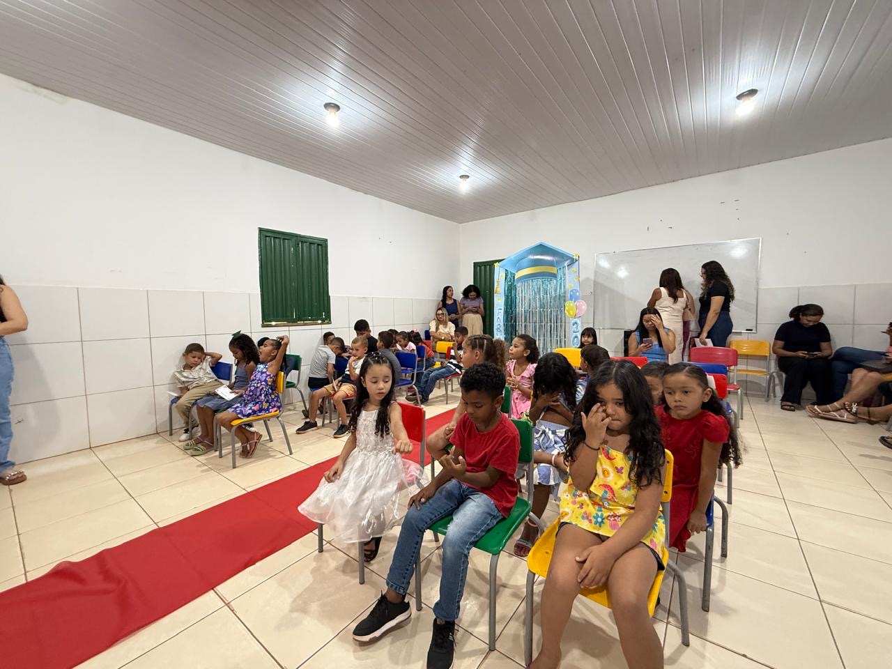 A cerimônia contou com momentos de apresentações, homenagens e atividades preparadas pela equipe pedagógica, destacando os avanços alcançados ao longo do ano letivo.