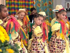 O evento também teve um toque especial: foi realizado em clima junino, com decoração temática, comidas típicas e apresentações culturais. As crianças do Serviço de Convivência e Fortalecimento de Vínculos (SCFV) emocionaram o público com coreografias, músicas e encenações que reforçaram o papel da cultura como instrumento de cidadania.