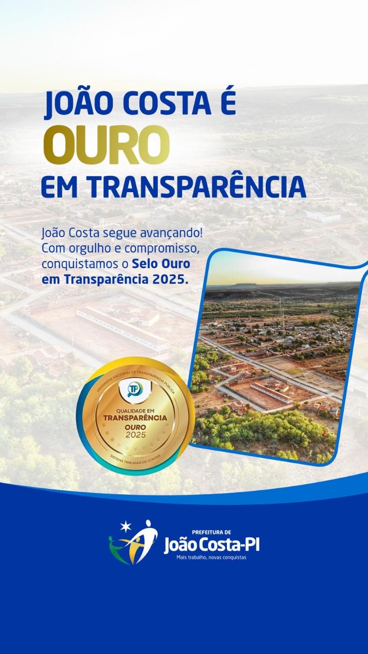 O município de João Costa obteve o Selo Ouro no Ranking da Transparência, certificação que reconhece administrações que cumprem elevados padrões de divulgação e acesso às informações públicas. O resultado foi divulgado após avaliação dos portais oficiais de prefeituras e órgãos públicos de todo o Estado.