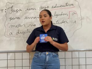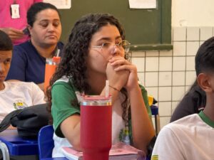 O encontro teve como objetivo mostrar aos alunos do Ensino Médio como a Ouvidoria funciona na prática. O aluno T. S., de 17 anos, manifestou interesse na dinâmica do órgão.