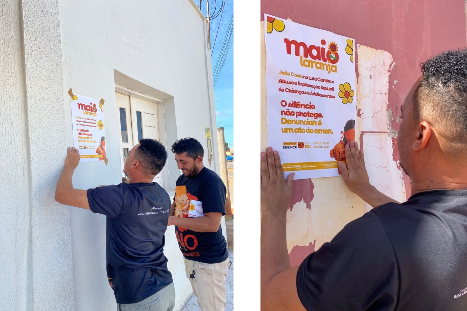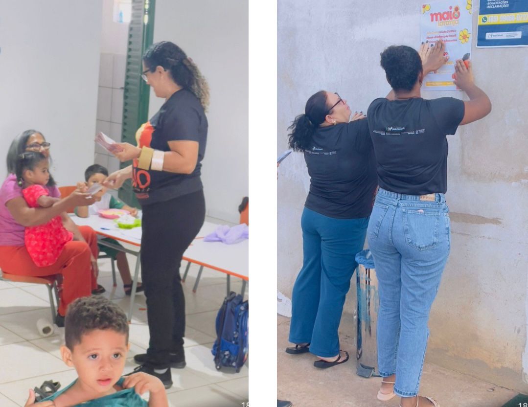 A mobilização também esteve presente nas ruas da cidade. No dia 9, uma grande ação de adesivação e panfletagem foi realizada nos órgãos públicos, levando informações à população sobre os canais de denúncia e a importância da proteção integral das crianças.