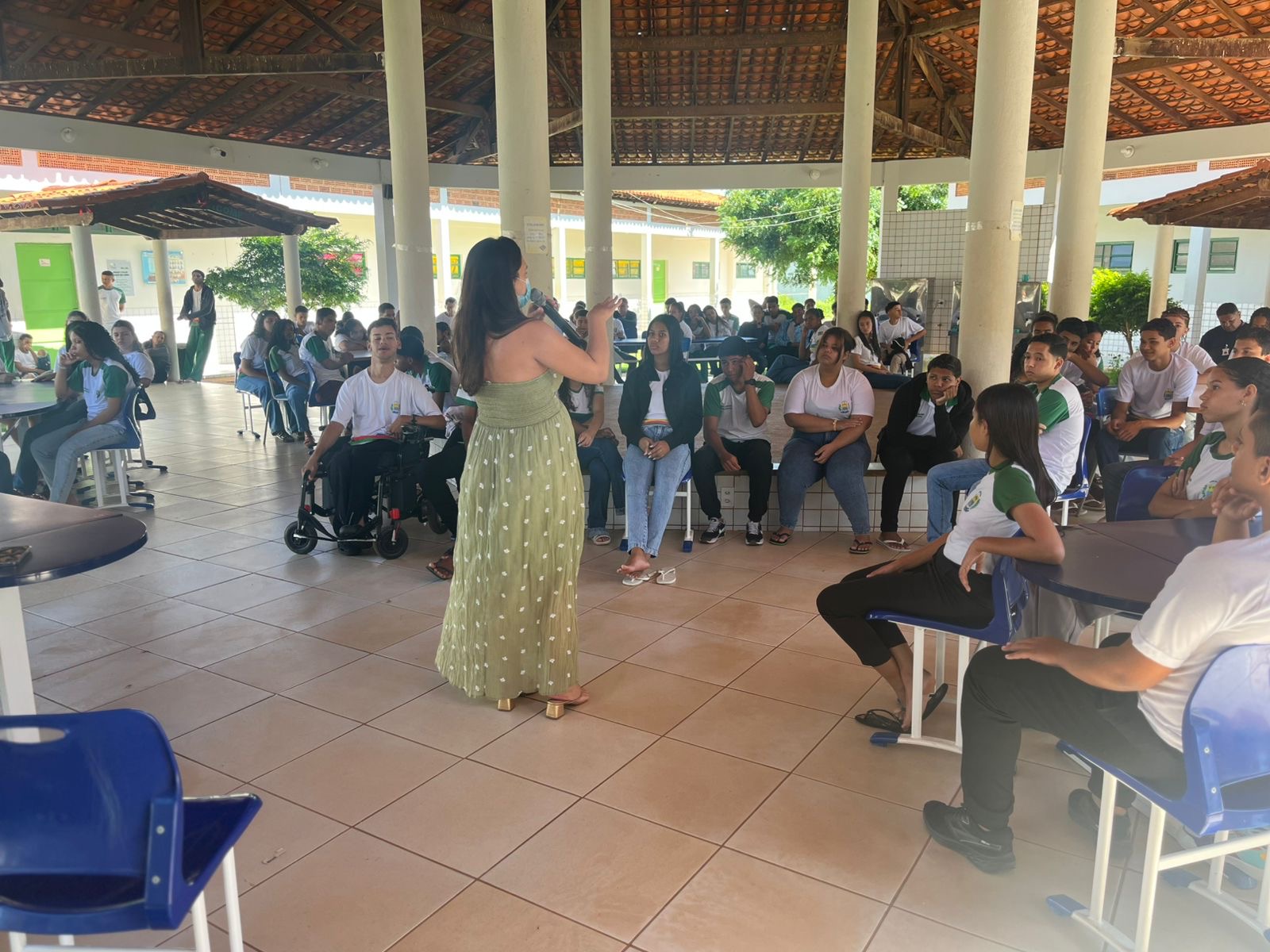 A atividade foi conduzida pela psicóloga Iderlâne Marques, que abordou o tema “A importância da saúde mental no início do ano letivo”, destacando a relevância de acolher os estudantes nesse período de retomada das atividades escolares, estimulando o diálogo, o autocuidado e o fortalecimento das relações dentro da escola.