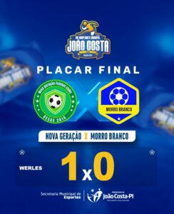 Já no sábado (07), foi a vez do Nova Geração garantir sua vitória diante do Morro Branco. O placar foi apertado, 1 a 0, com gol decisivo de Werles, em uma partida disputada do início ao fim.