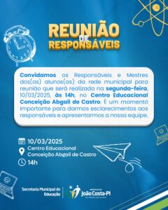 Secretaria de Educação convida para reunião de Responsáveis e Mestres