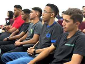 A participação também foi bem recebida pelos estudantes. A aluna V.G., que cursa o último período de Administração, comentou a relevância do momento: